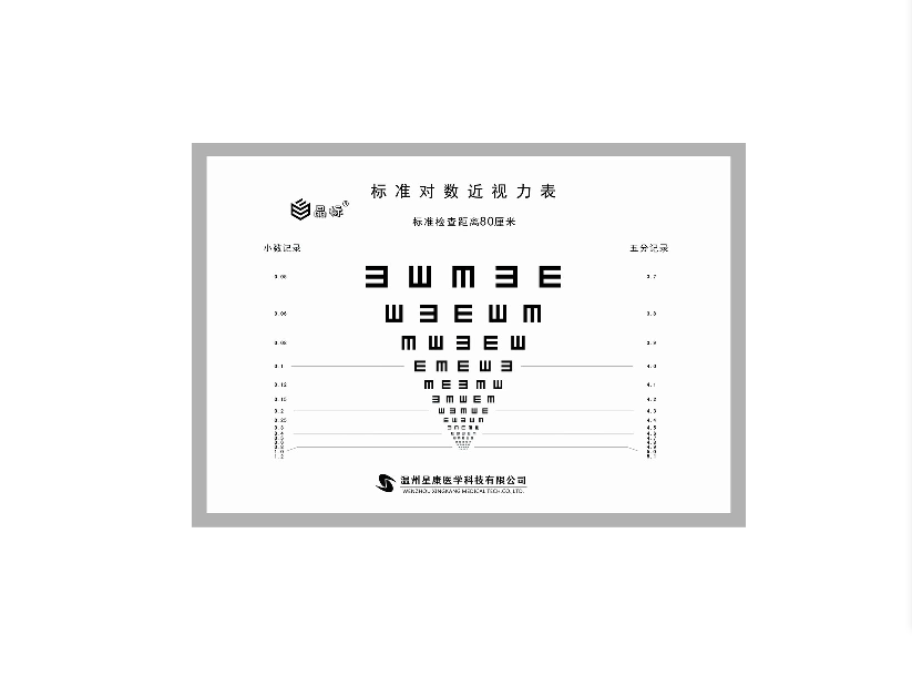 为更好适应眼科临床、屈光手术、多焦人工晶体日益发展的需要及对人眼视力进一步全面、便捷、精确评估,经视力表国家标准GB11533起草人温州医科大学王勤美教授推荐,使用视力表来系统评估人眼远、中、近的视力。但目前市场上找不到中、近检查距离的视力表,现由温州星康医学研制上市。